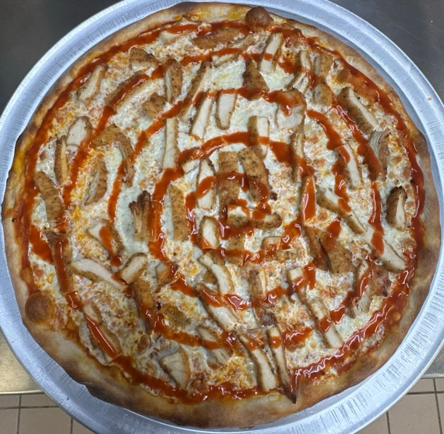 Breaded chicken, hot sauce, fresh mozzarella and a hint of crushed red pepper.